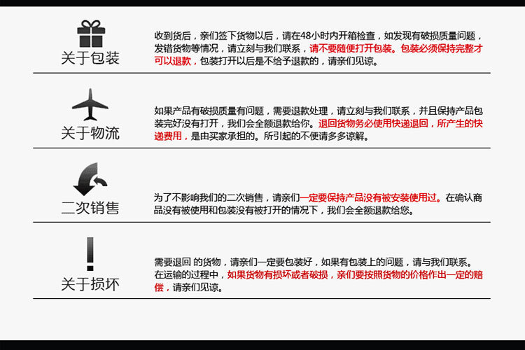 6.整洁建议:在装饰和使用本产品之前,请尽可能绝不损坏我们公司的透明防尘塑料袋。