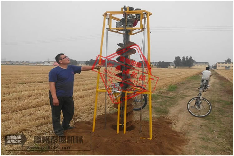 3.高操作质量:采用高强度钻头,三足和四足抗扭和拉伸螺旋钻杆。开凿的坑直而强壮,坑内几乎并未土壤,最大深度可达80-250cm。