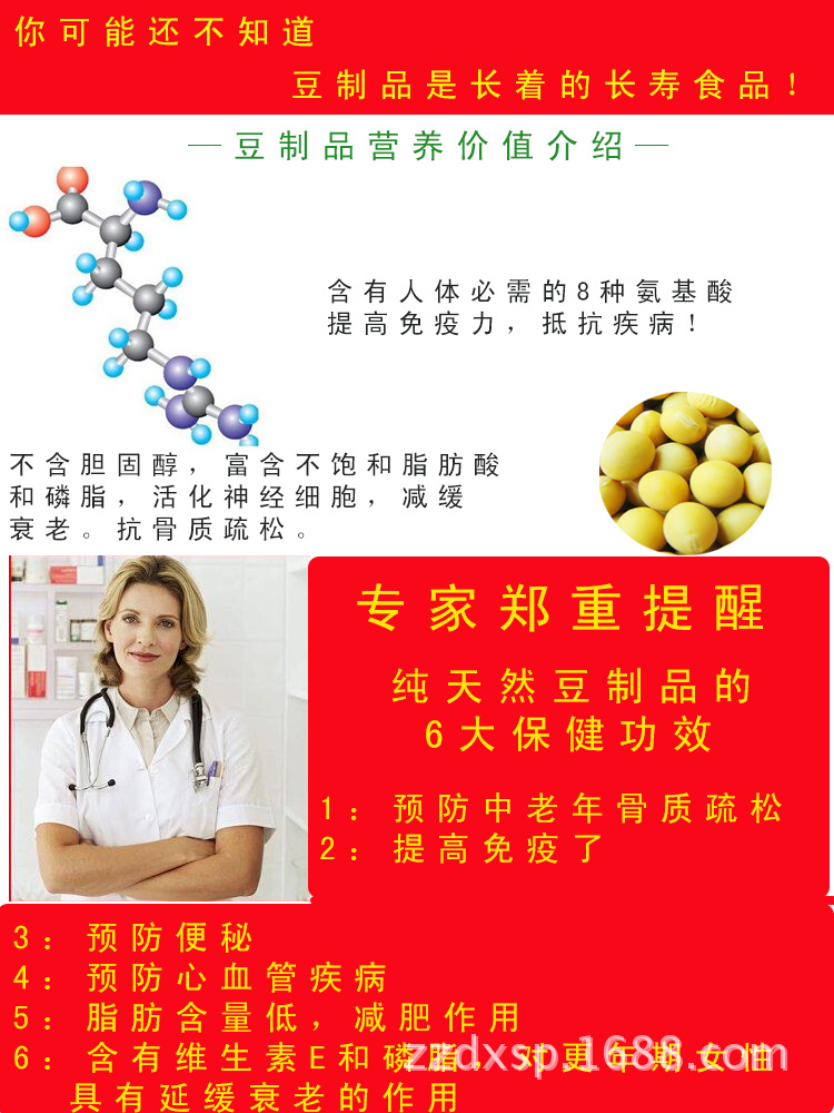 该产品富含维他命,大豆低聚糖,卵磷脂,钙,铁,镁,锌和其他矿物质,以及大豆异黄酮,植酸和其他奇特的海洋生物活性植物。它是高蛋白高膳食纤维,低脂,低糖,零胆固醇营养保健食品,素有“吃素之肉”的美誉:可用以汤,油炸食品,冷沙拉,火锅,麻辣烫,烧烤等。这是现代家庭生活的最佳选择。