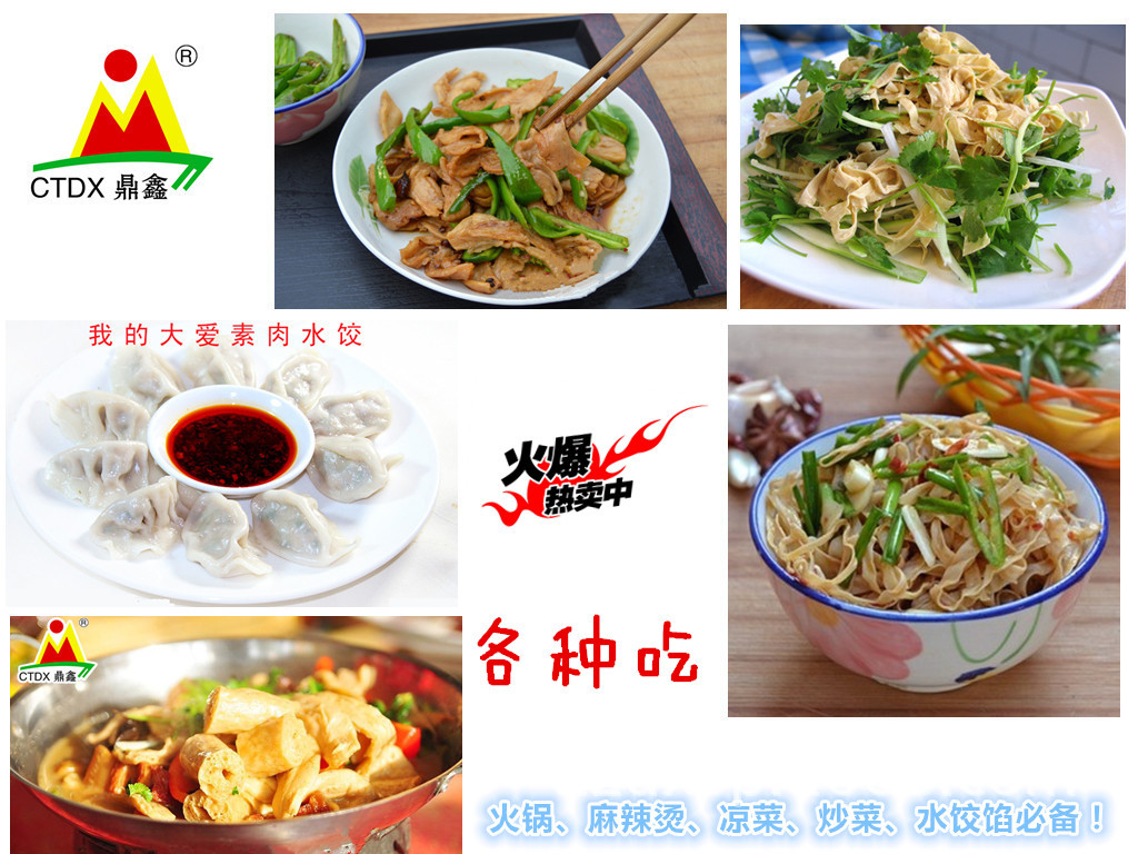 产品详情:豆制品山东人造肉山东豆制品人造肉 佛教食品工厂直销采用东北优质大豆,经过选项---清洗-干燥-冷榨和脱脂-粉碎-调制-膨胀模型---干燥-经过十多个过程(例如真空包装)精制而成,它是纯天然植物蛋白食品。