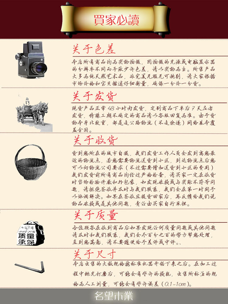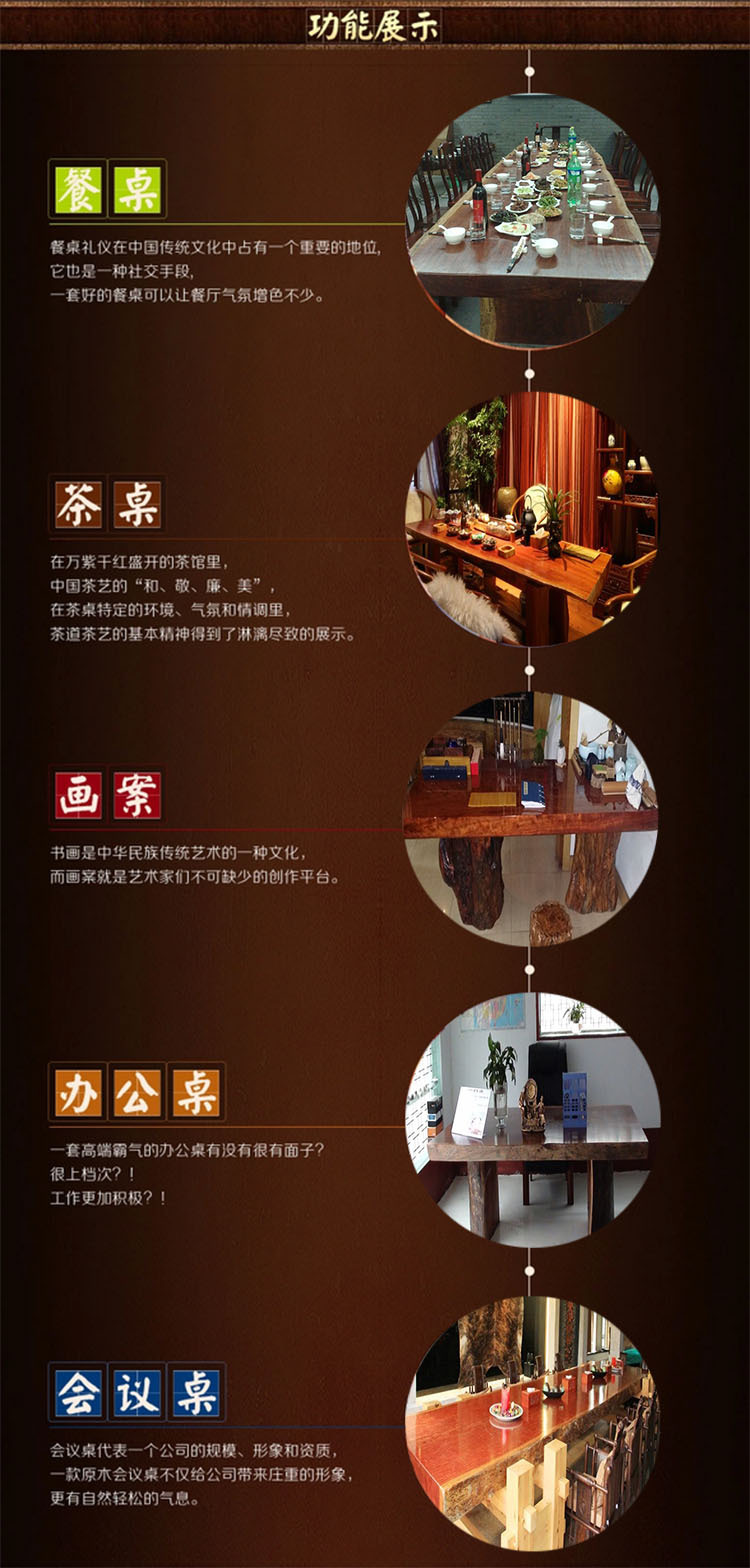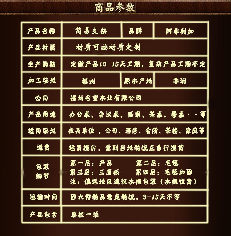 名望木业,是一家强劲的制造商,公司具备完整而科学的质量管理体系。公司专业从事八花板桌,巴花大板,巴花木头台,非洲花梨板桌,茶几,椅子,茶盘,根雕艺术品等产品的生产加工。该公司总部座落“中国木雕之都”福州市上街镇,该公司的建筑面积超过4,000平方米,所有产品材质都是进口的,其中包括非洲产的红花梨。,黄花梨,绿心檀,鸡翅木巴西花梨等。所生产的树种不仅兼具观赏价值,而且可以被搜集。明旺木业的诚信,实力和产品质量取得业界的认可。欢迎来自世上各地的木雕根雕发烧友在线或通过对讲机定购,并来到明旺木业参观,指导和洽商业务。我们将秉承“诚信经营,客户至上”的理念,并竭尽所能,使每一个客户满意并回报满意!