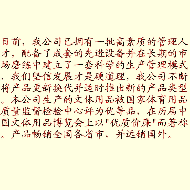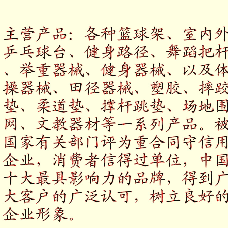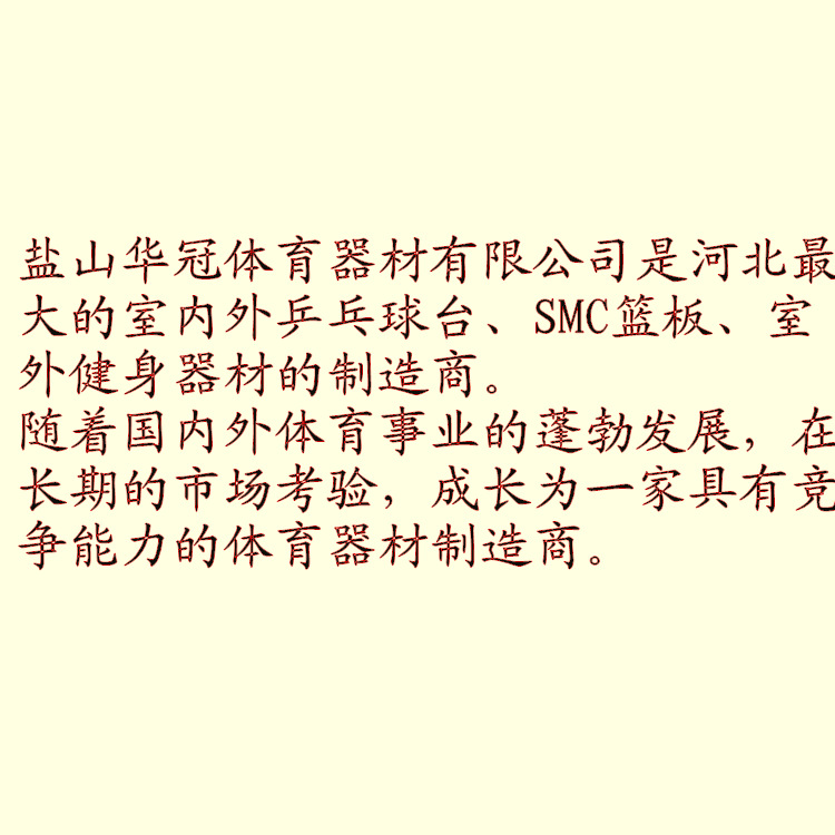 盐山华冠体育器材有限公司坐落渤海之滨,冀鲁和两个省的交界处,西邻205国道京津高速,交通非常方便,是最大的文化和体育装置的现代企业华北。随着中国体育的繁荣发展,经过长期的市场测试,它早就发展成为一家具备竞争力的运动器材制造公司。
