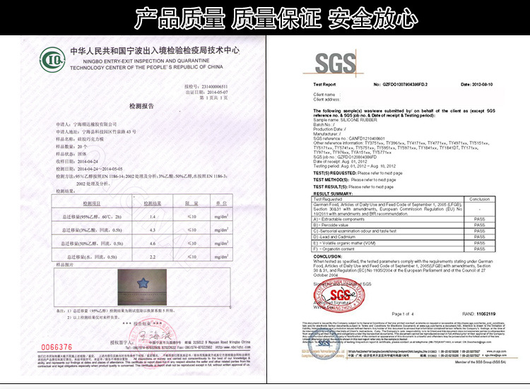 我们公司按照严苛的基准支配产品质量。我们已通过ISO9001:2008质量体系认证。由于合约和声誉,我们赢得了许多殊荣奖项,例如“诚信企业”。同时,我公司也是宁波市首家食品的联系方法,是一家有着相近产品的企业,其产品合乎食品保健规格,例如LFGB,DGCCRF和FDA。
