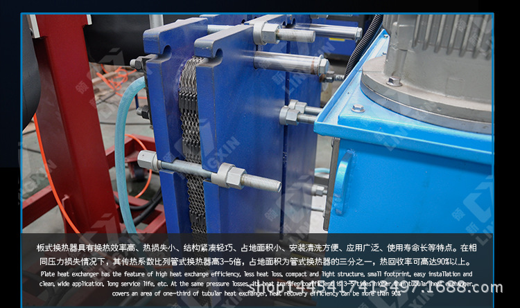 采用板式冷热交换器,换热效率高,构造连贯,原材料温度恒定,确保了产品质量;