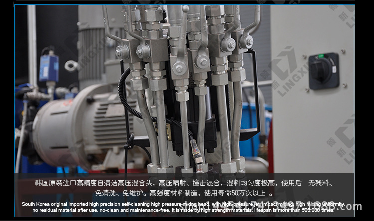 韩国原装高精度自清洗高压混合头,高压喷射,冲击混合,混合均匀度高,采用后无残留,无需清洗,无需维护。使用高强度材质制成,使用寿命长超过500,000次;