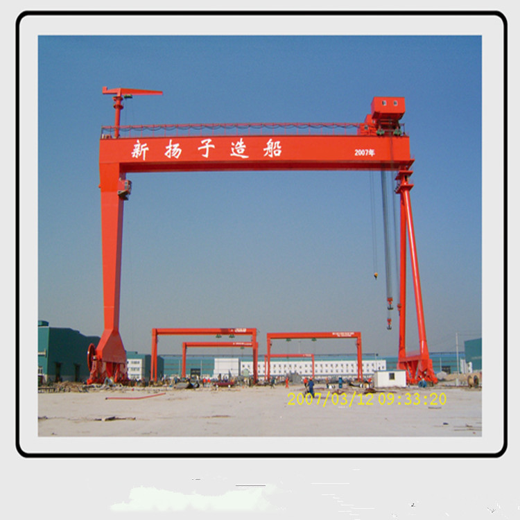 造船半门式起重机是用于制造船只和码头的起重机。它的任务是将制造船体所需的所有组件(肋骨,型钢,钢板等)从地面上的运输设备运送到制造现场。