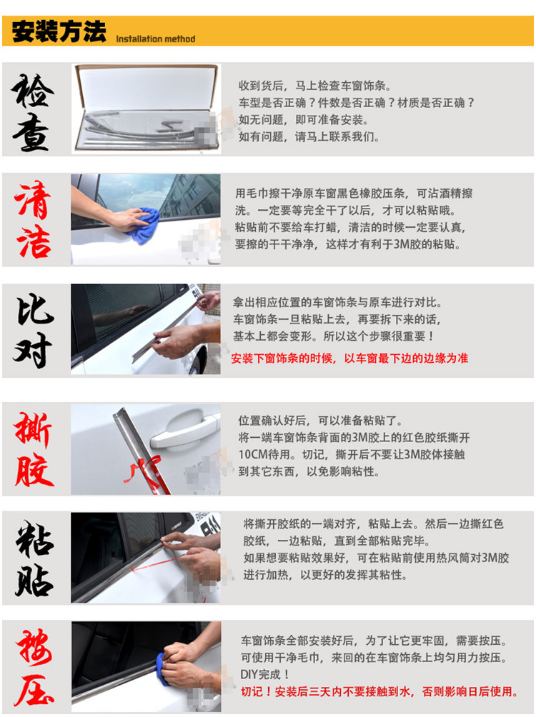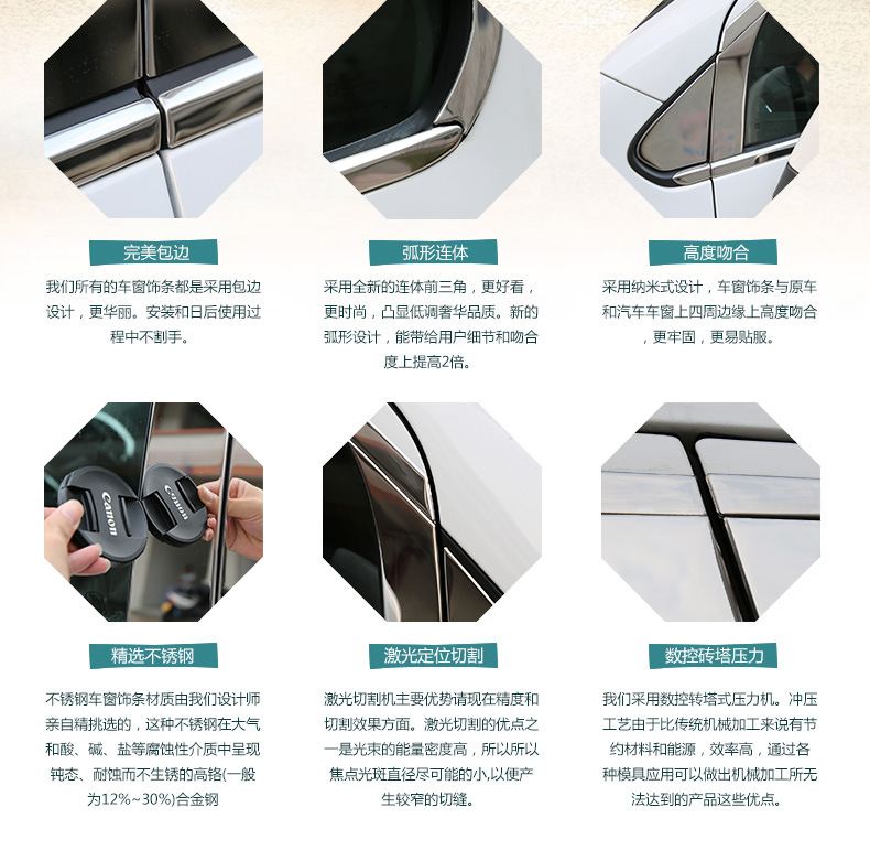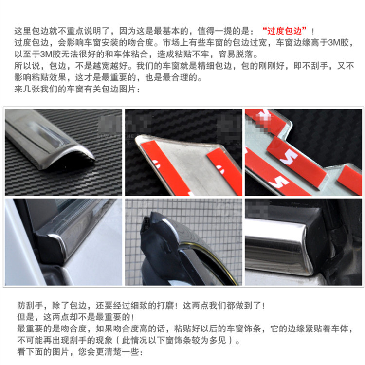 以下是IX35型号的真实照片(未附在中间支柱上),窗子条由镜面不锈钢制成,原始配置,4S特别质量,理想贴合,容易安装,可即刻升级汽车的等级!