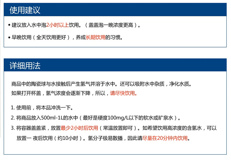 1.请使用纯净水和其他直接饮用水,也可以使用市场上的瓶装水。用法:在低于500ml的容器中放入1根能量氢棒;500ml——1l容器,放2根能量氢棒。