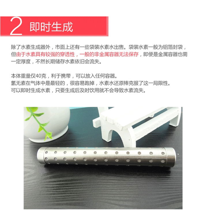 1.开发该产品的目的是在水中连续生产氢分子,以便人们可以轻松食用富氢水。