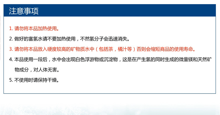 请勿将能量氢棒放在水壶,电饭锅,热水瓶等中开展加热。