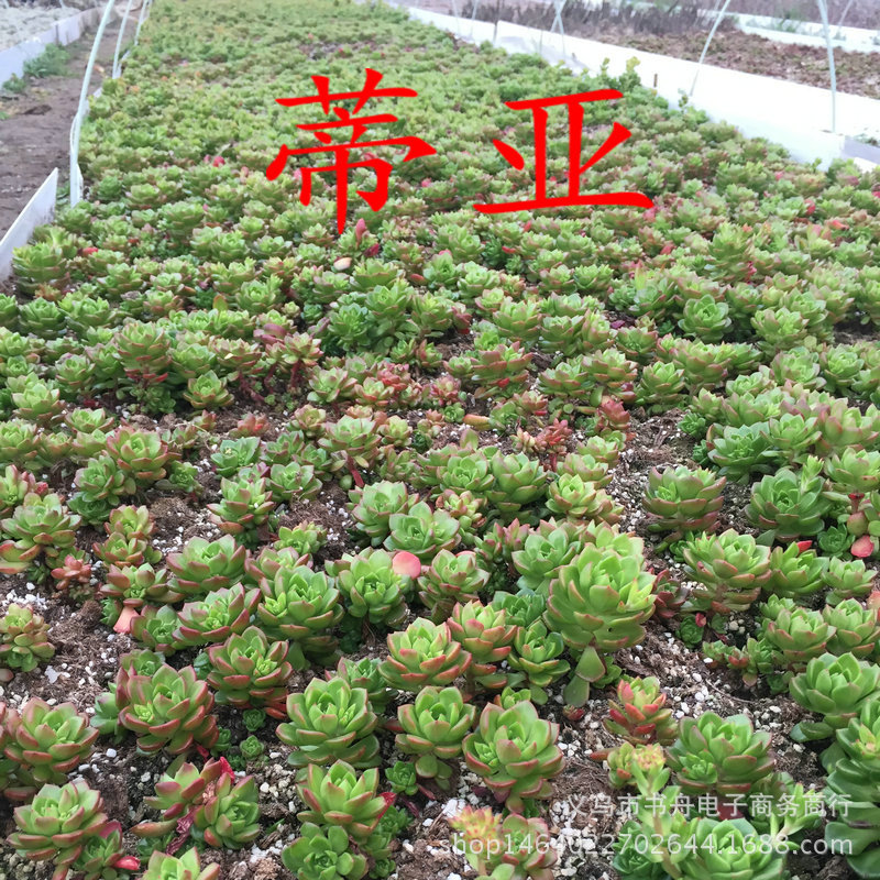 蒂亚Sedeveria Letizia是景天属和拟石莲花的杂交栽培的园艺多肉植物种类。Sedeveria表示景天属Sedumx拟石莲花属为Echeveria,两个拉丁文genus称呼各占一半,合在一起。蒂亚叶子呈倒卵形和楔形,叶尖叶片为三角形,短尖,叶片背面的中心是凸形的,边缘有十分短的刚毛,紧密排列成莲花形。蒂亚容易从茎的底部生长并形成多支系构造。植株宽度可以达到20cm。随着它的生长,下部的叶子会日趋脱落,形成旧的堆。蒂亚的叶子在正常情形下是绿色的,但是在秋冬时节,如果强光充裕,蒂亚的叶子将从边缘变成红色。整个叶子,如此红,令人难以置信,可谓凶猛。
