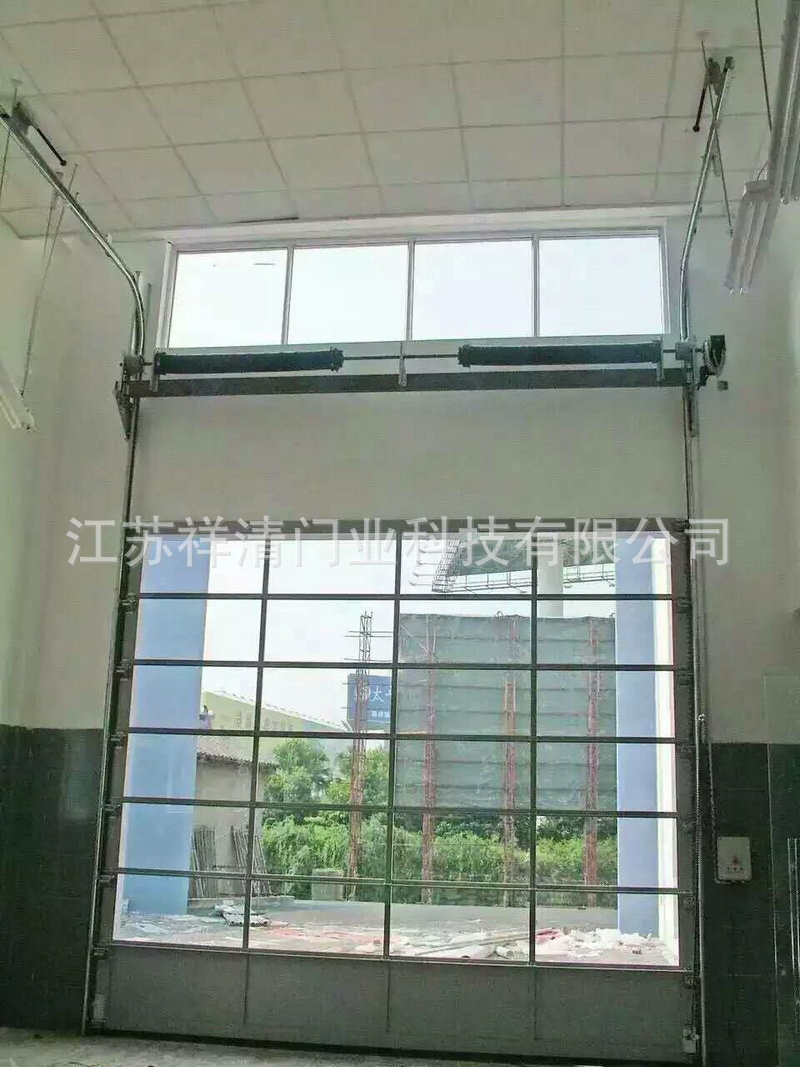 工作原理:多联动门片串联连通,固定在导轨上,以门上方的卷轴为中心上下旋转。