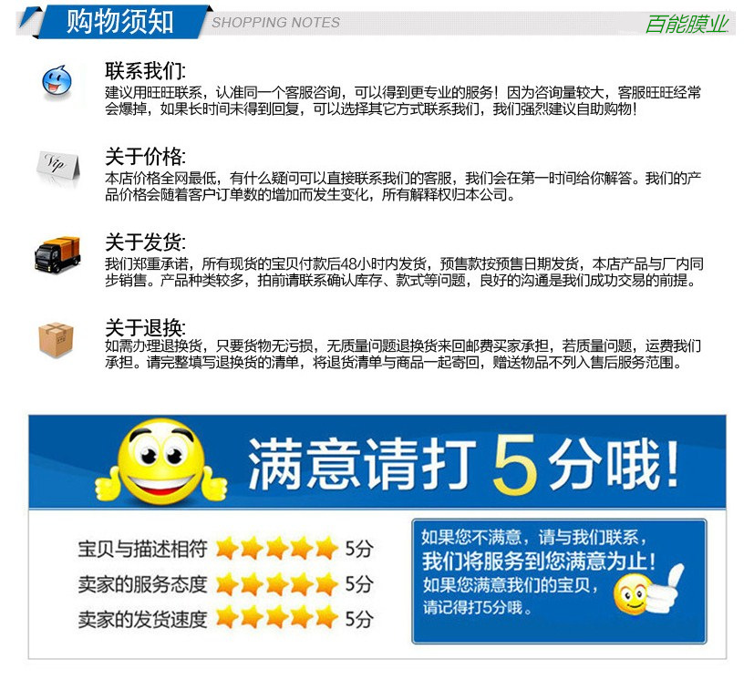 1.购买no1:购买前先抽样,并确保购买;所有特殊定制尺码的胶片都不予退还。
