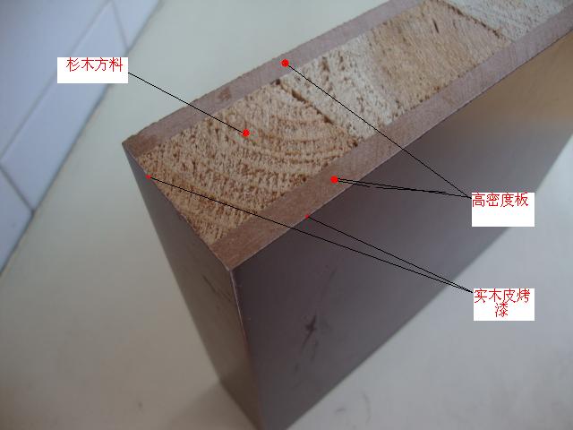 门扇:规格厚度4.0厘米,密度板+杉木内芯+天然实木树皮+烤漆
