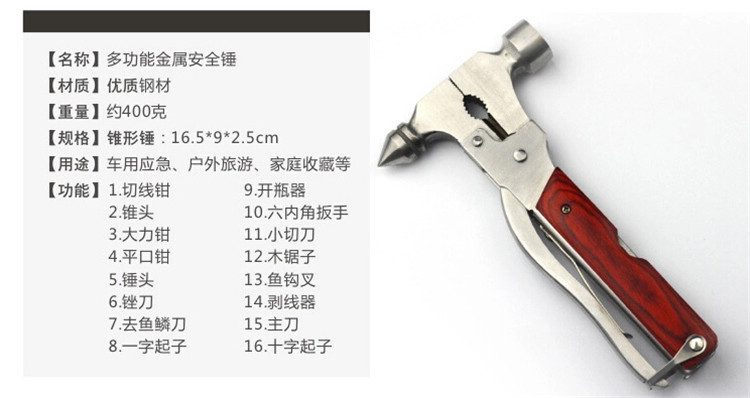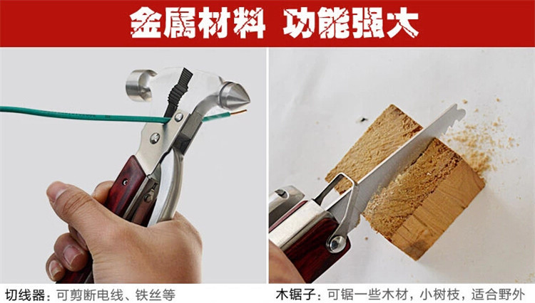 [主要工具]老虎钳,剪线钳,锤子,刀,十字螺丝刀,锯,锯齿刀,一字螺丝刀,锉刀,开瓶器等机能合而为一。