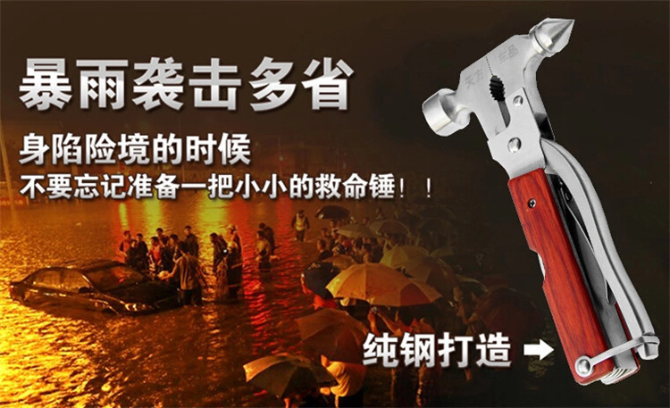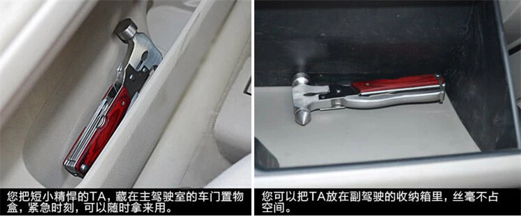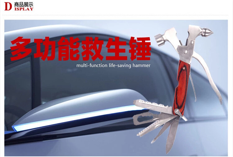 这种全钢安全锤主要使用其锥形尖端。由于尖端的接触面积较小,当用锤子敲打玻璃时,玻璃上接触点的压力(不是压力,而是单位面积)的压力很大,很容易打破玻璃,可以在几分钟内逃出汽车(例如,燃烧的汽车需十分迅速地逃脱,时间十分关键)。