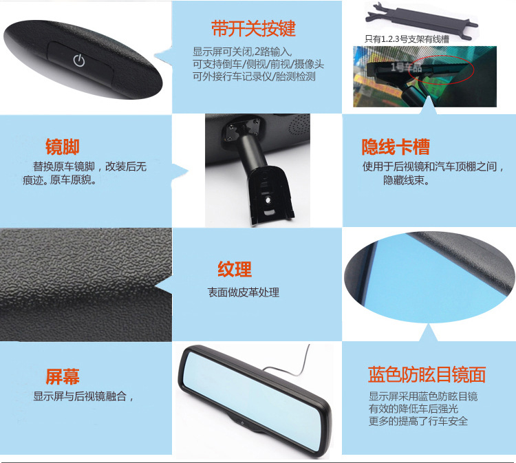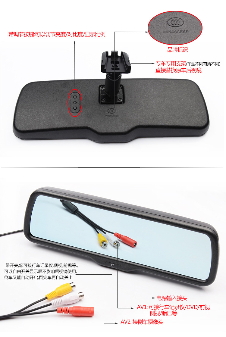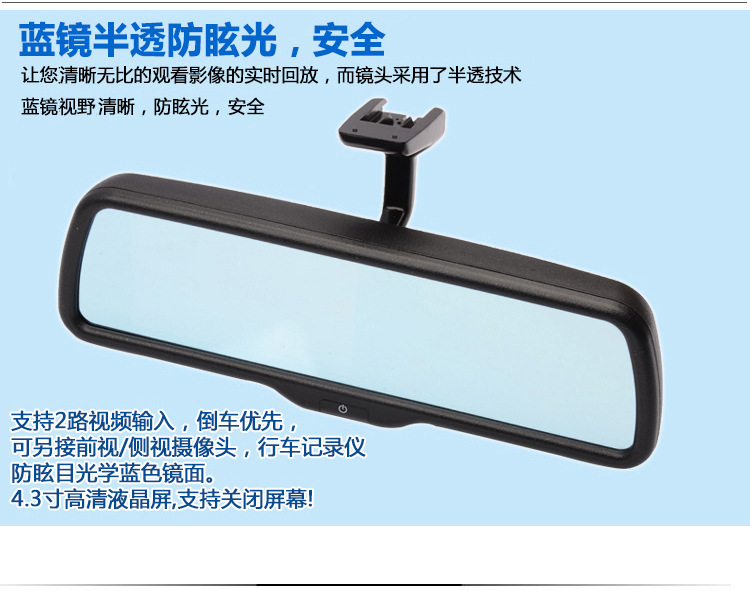 产品详情:产品称谓:4.3英寸高清后视镜监视器,带专用汽车开关