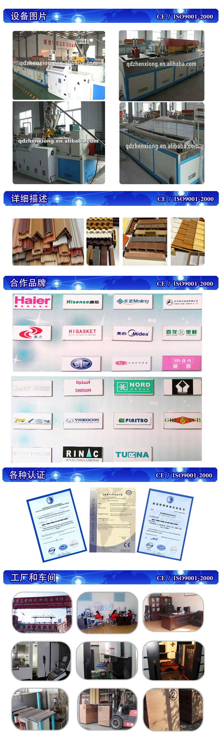 产品详情:塑料门窗型材生产线主要以PVC和UPVC为原材料生产各种塑料门窗型材,装饰型材等,生产线可根据具体生产采用单螺杆或双螺杆挤出机用户的需要,主机和牵引装置采用日本富士变频调速控制器,可以实现整条生产线的无级调速。温度控制采用日本RKC温控仪表,可以实现准确的温度控制。真空定型台采用循环水密封节能真空系统,配置集中供水和快换接头,可实现简便,便捷,快捷地更换各种形式的成型模具;整形台可以是4米,6米,8米等。牵引车采用履带式牵引车,可以确保型材挤压过程的稳定性和不变形。自动成膜装置确保了挤出产品的表面光洁度。切割装置为同步跟踪构造,可保证产品剖面平坦,无碎屑现象。该机组具能耗低,性能安定,速度快,效率高的特性。外观,抗压性能强,光稳定性和热稳定性good,大小变化率低,抗老化。