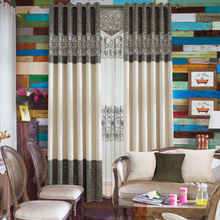 黎氏名爵五节亚麻拼接中式古典窗帘