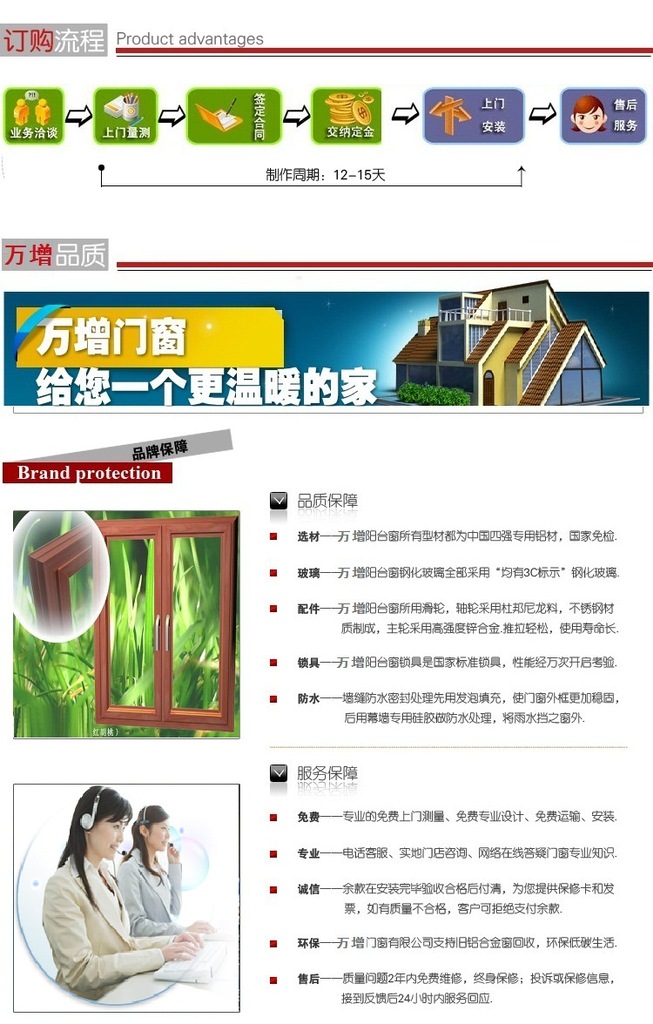 产品详情:目前,在我国建筑门窗产品市场中,铝门窗所占比重最大,约为55%。业内人士预测,尽管在低档产品的冲击下铝合金门窗的市场表现疲弱。近年来,在未来房地产业发展的带动下,铝合金门窗具有耐腐蚀,变形小,防火性强,使用寿命长等特性,决定了其与塑钢仍将是主流。未来市场。