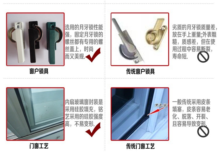 7.良好的防盗功能:断桥型铝合金窗,配置优质的五金配件和先进的装饰锁,使窃贼无可奈何