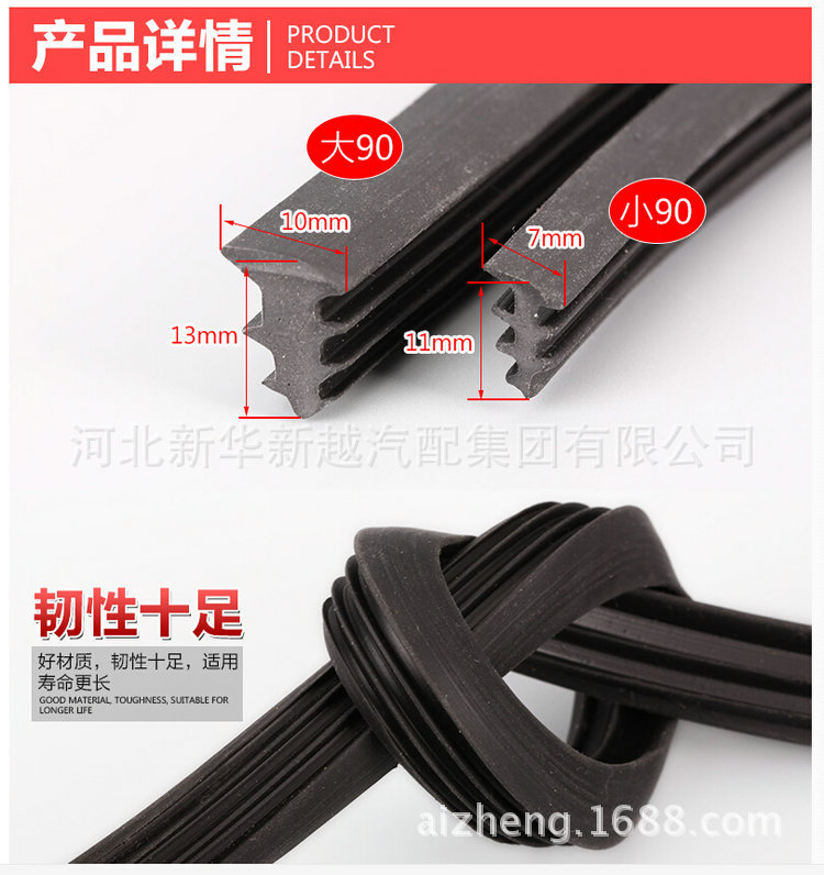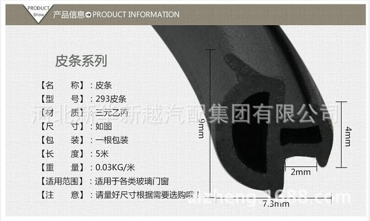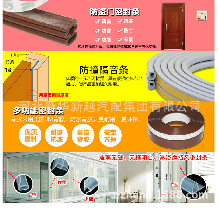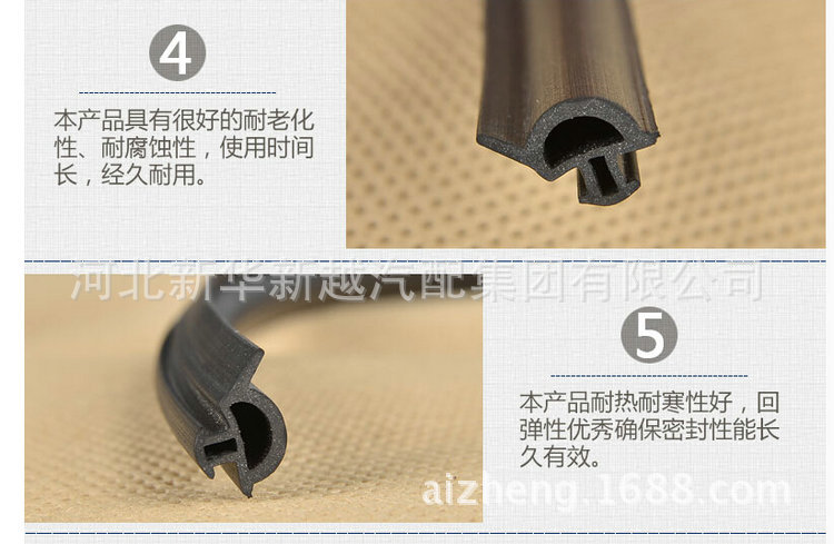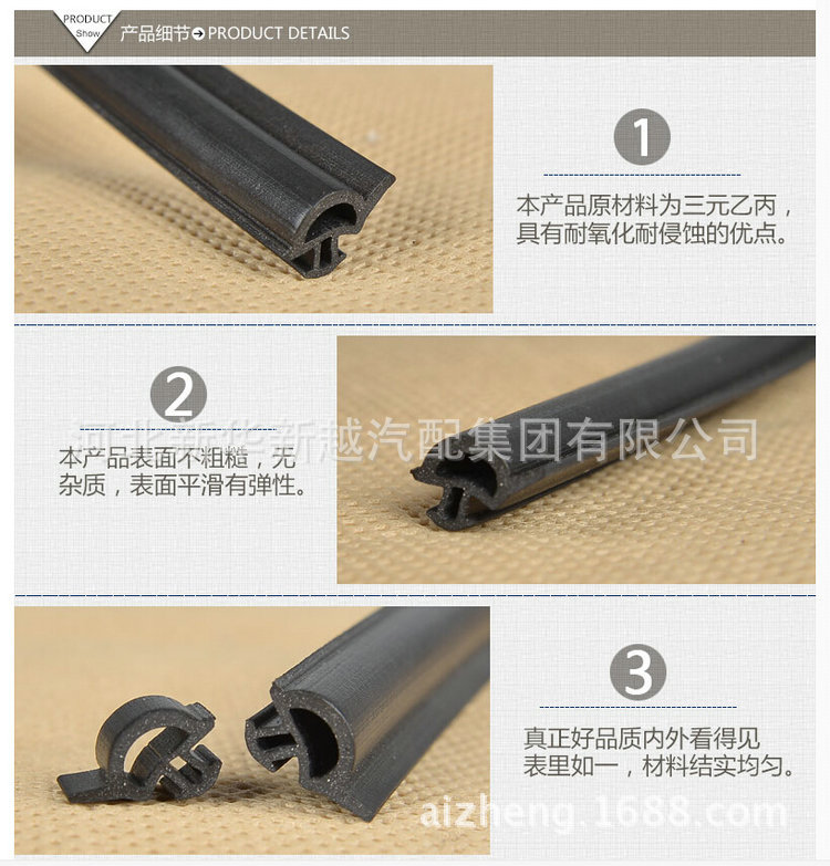 三元乙丙(EPDM)密封条一次通过微波硫化工艺形成,表面光滑美观,具备不错的弹性和抗压缩变形,耐候性,耐臭氧性,耐化学性和宽温度范围(-40℃〜+120℃)等优异性能,已被普遍应用于汽车门,窗,幕墙等制造行业。适用于形状,材料不同或耐寒,耐热,发泡,固体的产品机身,以及特别的性能要求,可以满足设计和使用的需要。