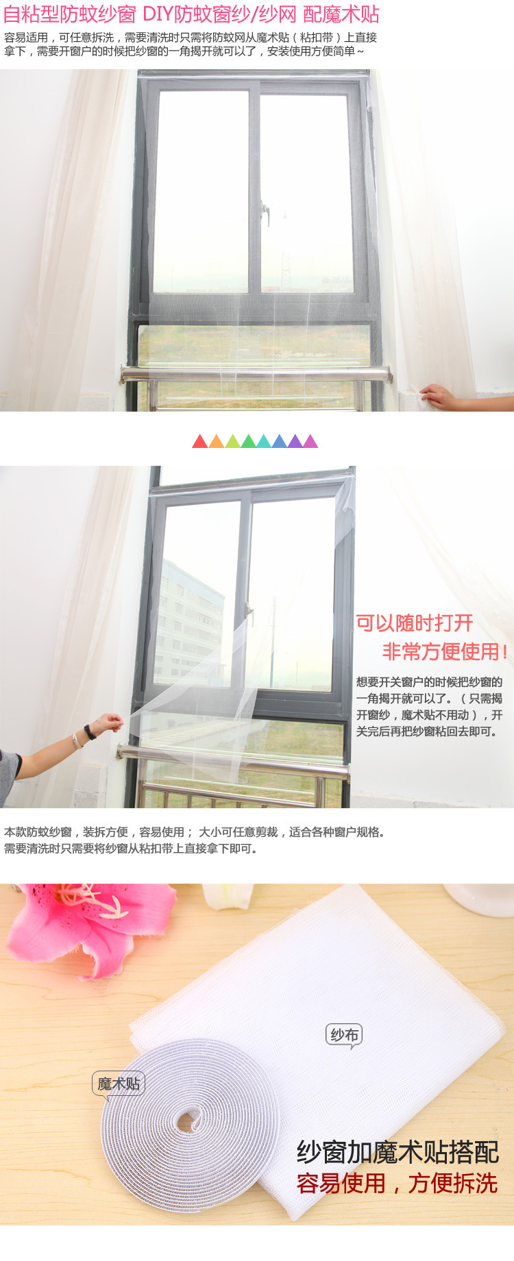 [规格/参数]:防蚊纱窗+自粘魔術貼,您可以根据门窗的尺寸开展定制
