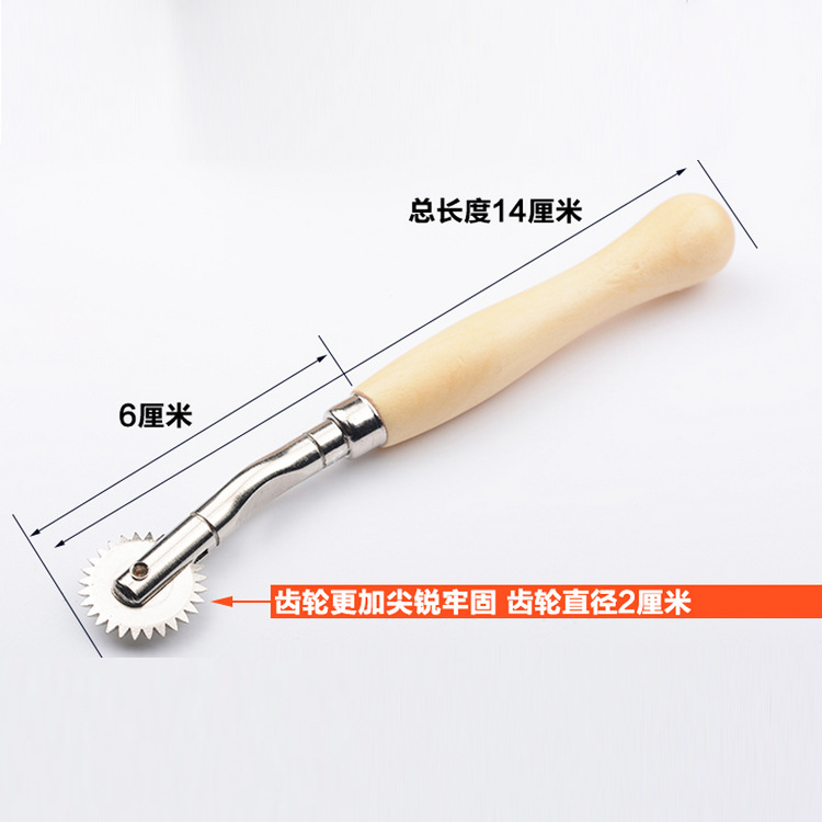 车轮的直径约为2.1厘米,尺寸约为14厘米。将点状标记压在布料上,这样可以方便沿直线缝制布料。