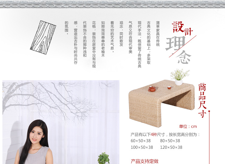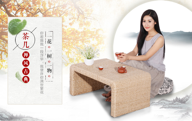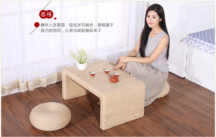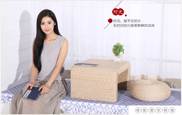 百艺creative简单时尚手工草编田园绿色榻榻米茶几飘窗茶几咖啡桌