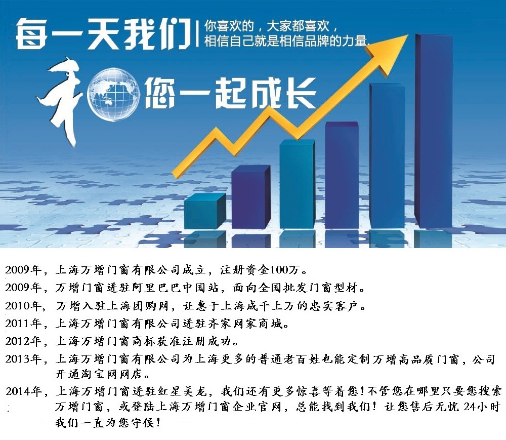 面对新经济时期的新市场情势,上海万增门窗有限公司将在剧烈的竞争中不停更新价值观,施行全方位的现代综合管理,��从容和日趋早熟的心态来应对未来的挑战。