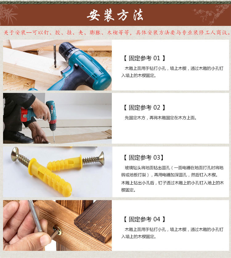 产品详情:东阳京鼎古木艺是一家专业生产各种古董门窗,挂件,花板,屏风,明清家具,壁挂,佛像,镜子框架和其他种类的木雕艺术品的公司。适用于大中型会议室的酒吧,茶楼,祖堂,堂前,花园,家庭及家庭古典装饰等室内外装饰。产品原材料选用樟木,黑胡桃,柚木。沙比利。红样,桃木,榆木等。高雅材质。