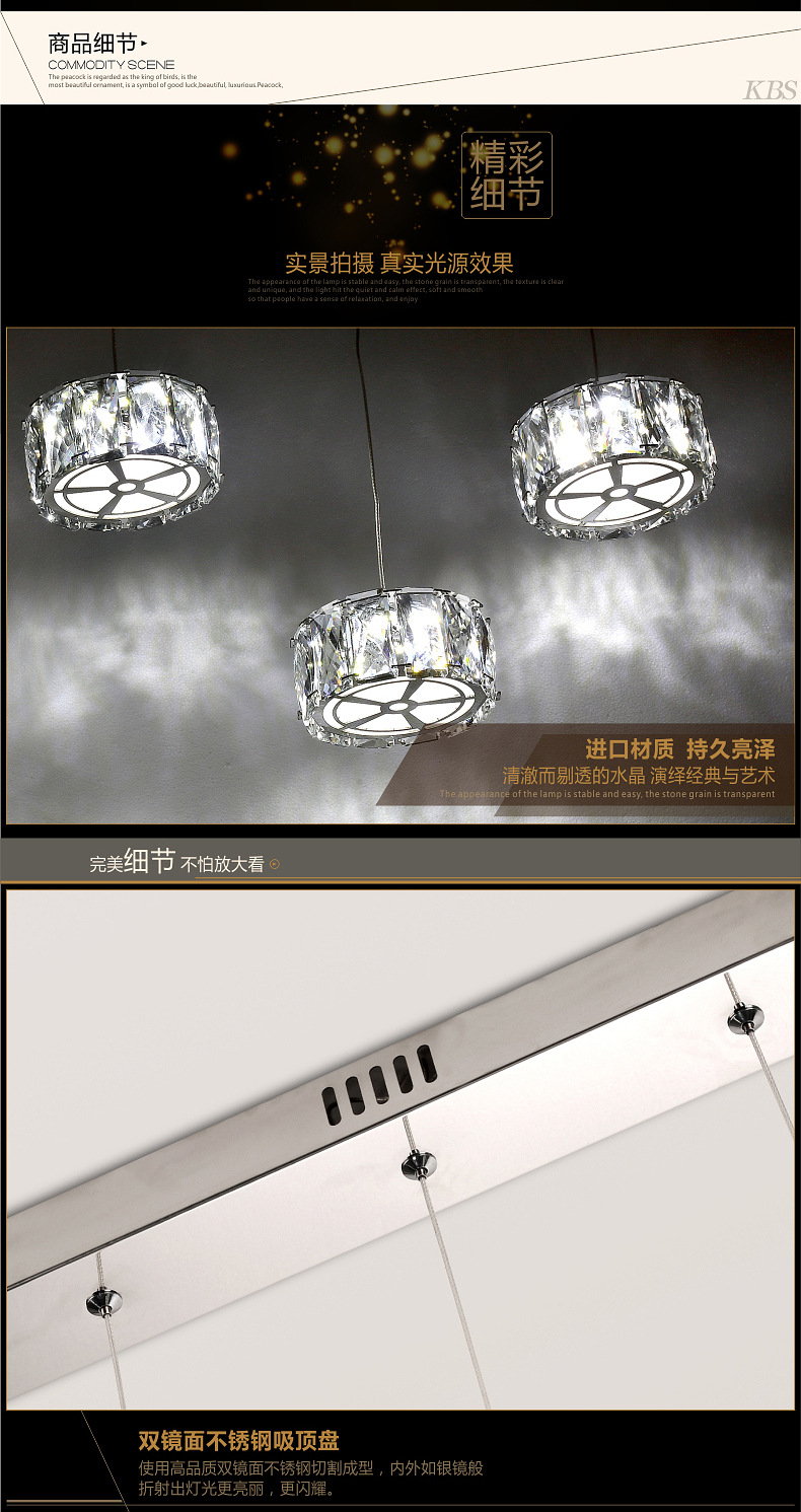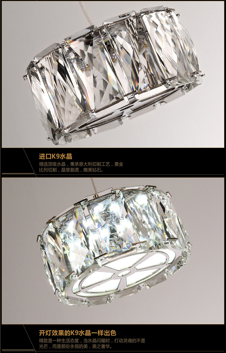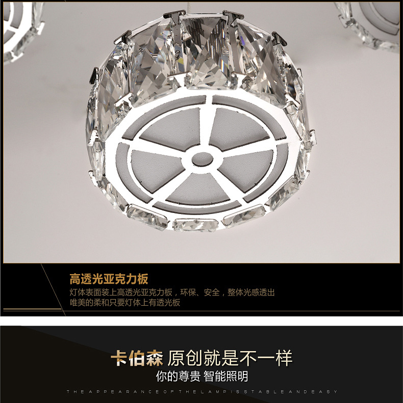 产品详情:雷盟照明专业生产不锈钢现代led水晶灯,欢迎世上各地的朋友加入和分销!
