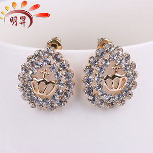 时尚钻石椭圆形王冠耳钉耳环配件耳环欧美热卖批发空心尺寸钻石防过敏耳环