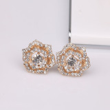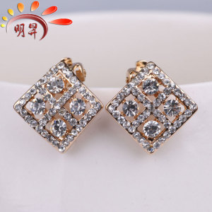 高档空心钻全钻方形耳夹配件批发耳钉外贸热销耳环防过敏耳环
