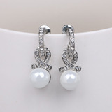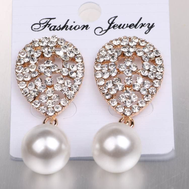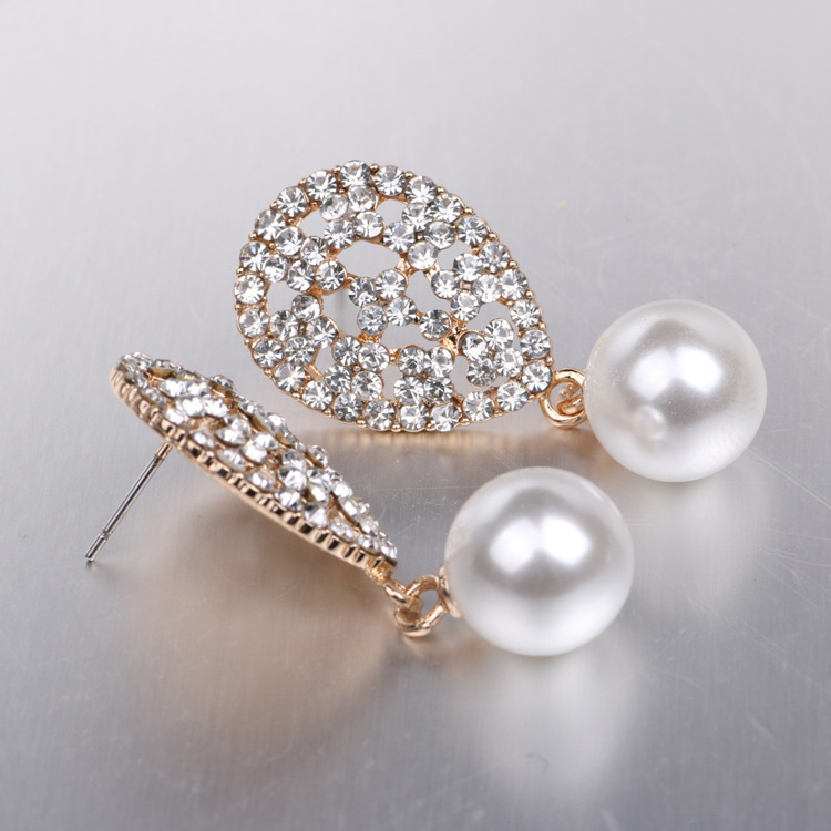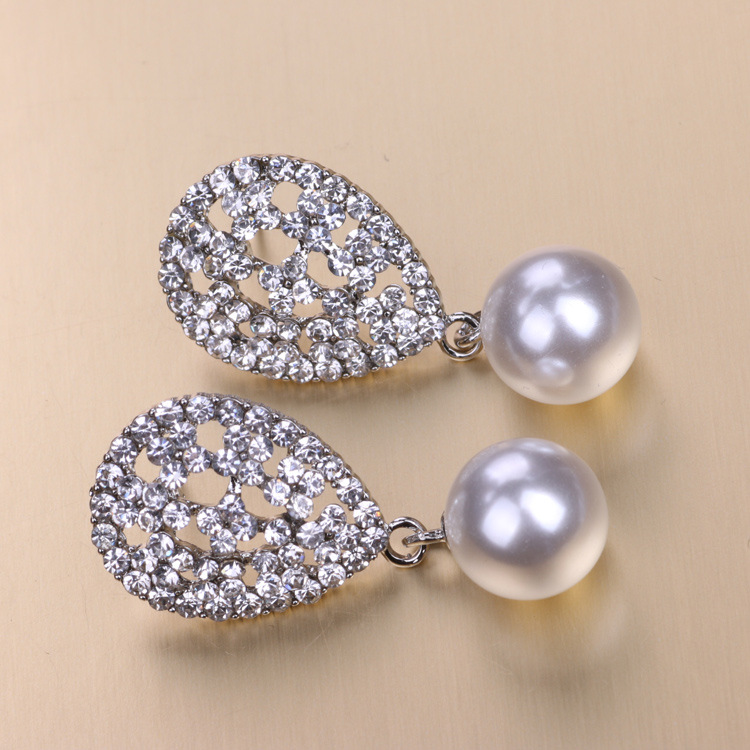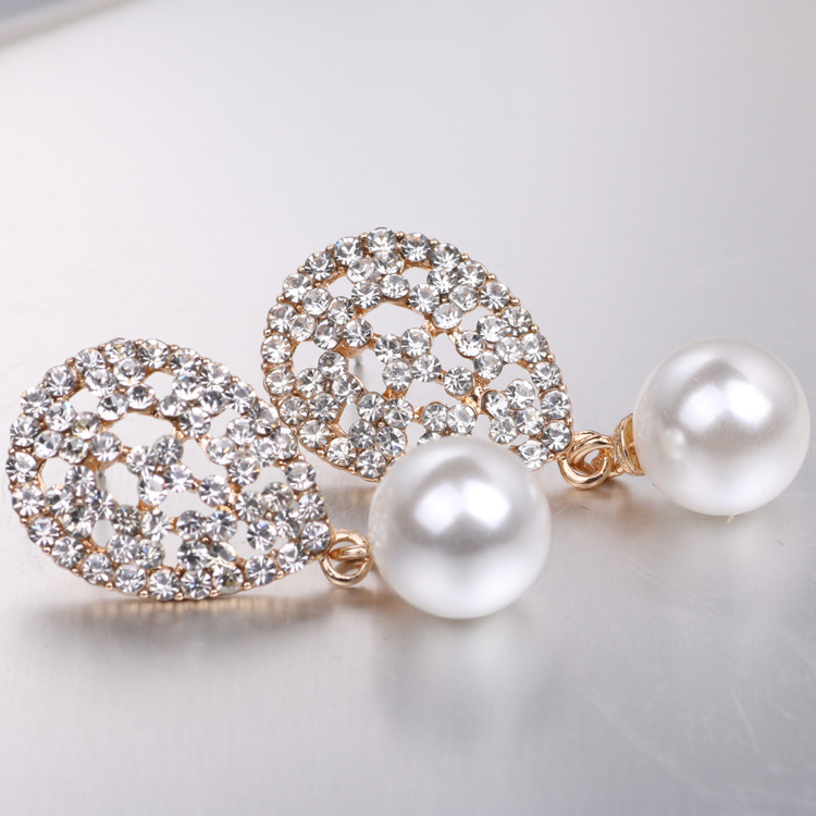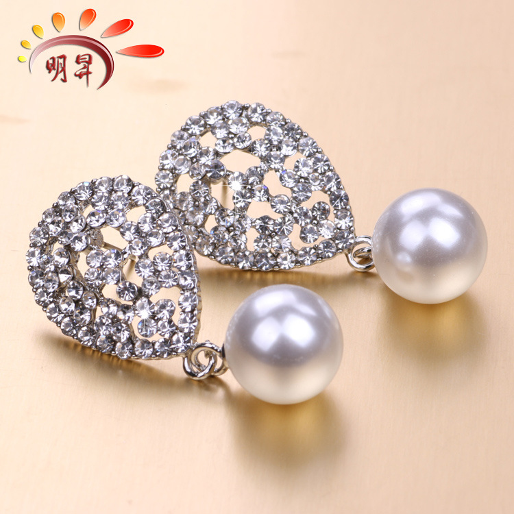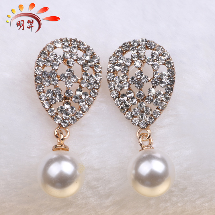 时尚创意新款女式珍珠耳环外贸耳环水钻电镀耳环白金速卖通供应