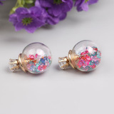 产品详情:简约韩版玻璃球双面锆石耳环时尚爆款耳环女式甜蜜耳环批发外贸