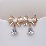 时尚锆石耳环光面珍珠耳环夸张蝴蝶结大耳环水滴形简约外贸新款