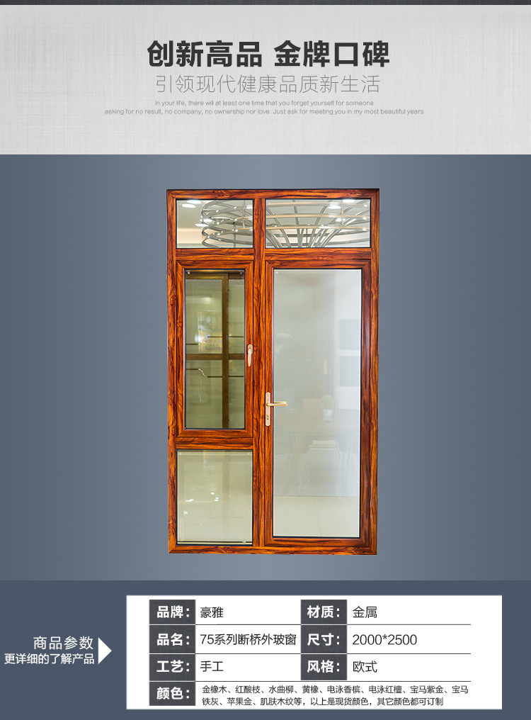 - 颜色金橡木、红酸枝、水曲柳、黄橡、电泳香槟、电泳红檀、宝马紫金、宝马铁灰、苹果金、肌肤木纹等,以上是现货