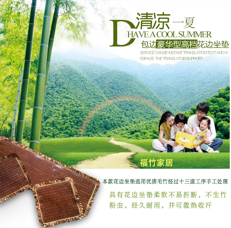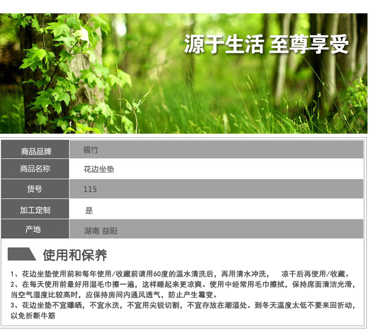 湖南省益阳市福竹竹业成立于1998年,使用国内专利竹凉席成套设备生产。它是中国最早的保健垫制造商之一。生产工厂邻近国道,益桃一流的高速公路经过工厂入口,交通非常便捷。公司坐落风光秀美的湖南省益阳市谢林港镇,在全国十大有名竹乡中,竹子储备充沛,竹凉席的加工历史悠久。该公司的床上用品,麻将垫,坐垫,沙发套和汽车坐垫在消费市场上畅销,并享有在顾客中享有很高的地位。公司与多家零售商和代理商成立了长期平稳的合作关系,床上用品,麻将垫,坐垫,沙发套,汽车坐垫的经销种类完备,价钱合理,公司实力丰厚,值得信赖,遵从重合同,确保产品质量,以其多变的经营特色和薄利多销的规范获得了客户的信赖。欢迎新老客户来厂购入或来电咨询!