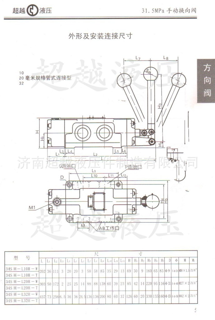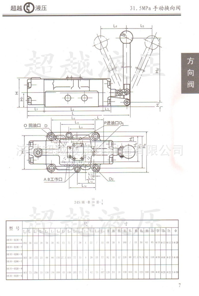 产品详情:手动换向阀是采用手动操纵杆来操纵滑阀换向的换向阀,在液压系统中,它可以支配油流的方向以变动执行部门的运动方向。手动换向阀的滑阀换向定位该方式具钢球定位和弹簧复位式两种构造。钢球的定位是在取消操纵杆的外力时,通过钢球的定位将阀芯维持在换向位置。种类是当取消操纵杆的外力时,弹簧使阀芯自动复位到初始位置。31.5mpa系列34S#- B# H- # 型的手动换向阀卸货口须要单独赶回油箱,而不连通燃油端口等
