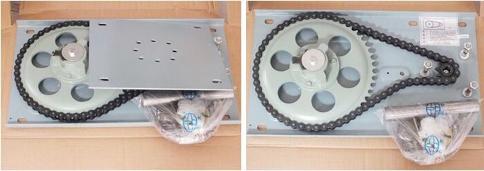 2,链条传动:传动效率高,破碎机已获国家专利证书,当链条意外折断时,装置会自动锁紧,防范卷门自由掉落,经济确实。