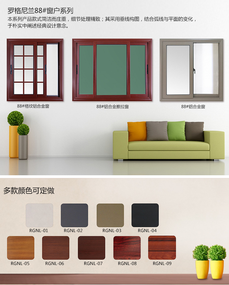 产品详情:RGNL-88#铝制推拉窗经济高效推拉门窗出口推拉窗