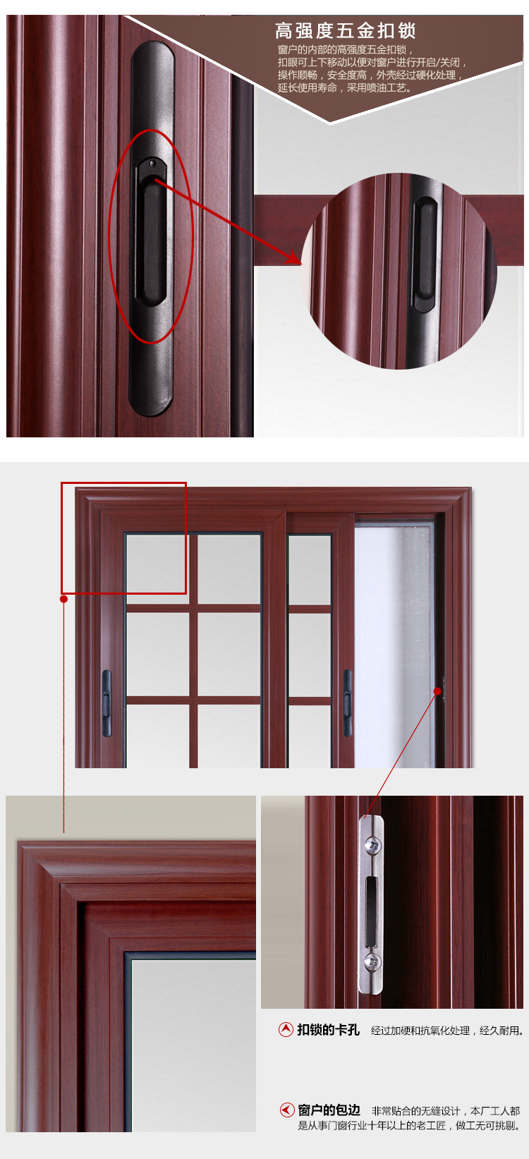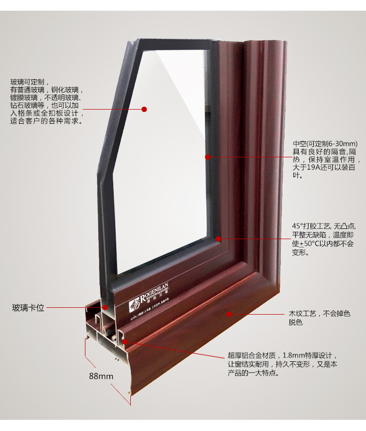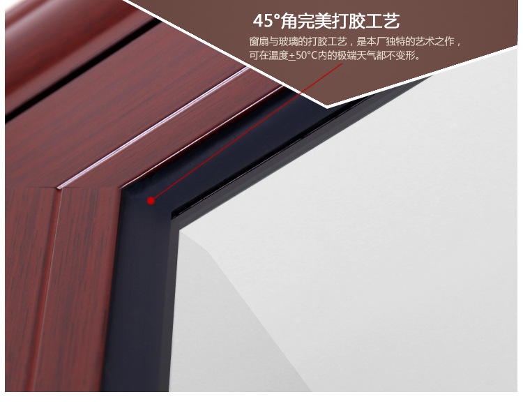 5,窗框与窗扇以45o连通,安全,稳固,美观;