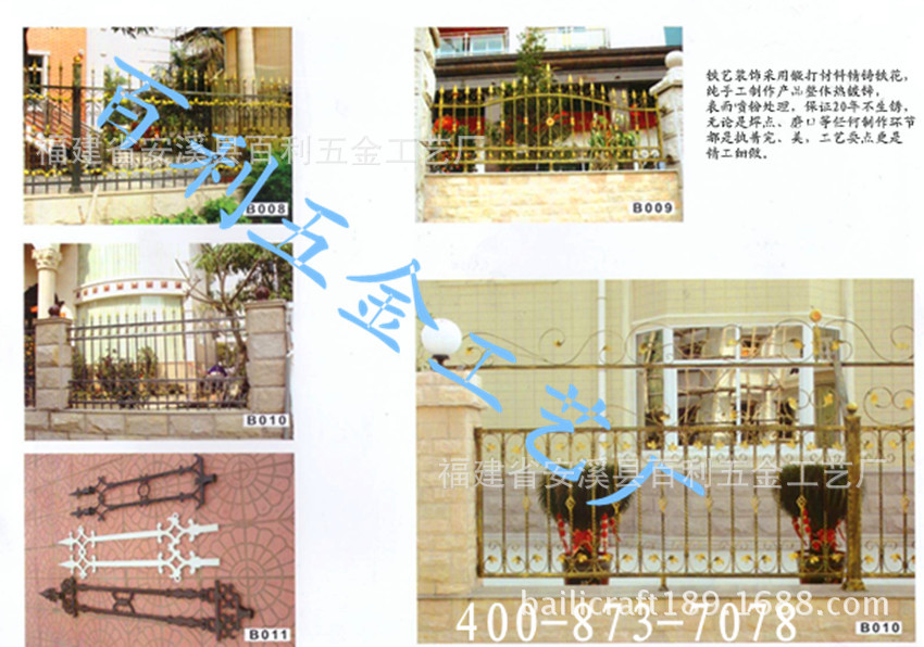 铁艺装饰采用锻造材质和精细铸铁花,使用纯手工制作的产品热镀锌,表面喷涂处理,可保证10年不生锈,无论是焊点,磨口还是其他生产环节,都具持久性:美妙的工艺要点越发可靠。