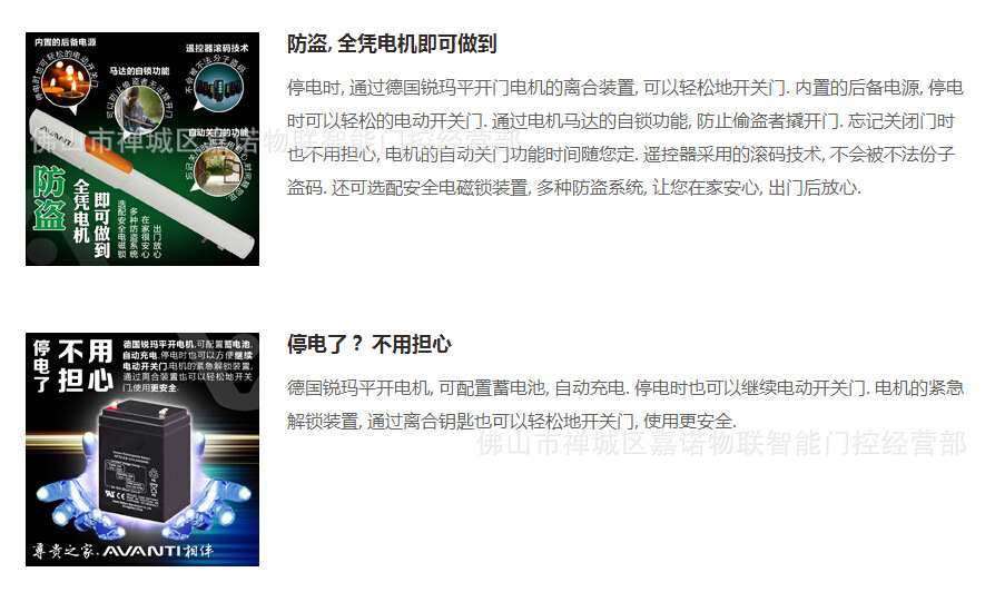 遥控频率:433.92mhz;安全滚动码技术,最大相距为80米