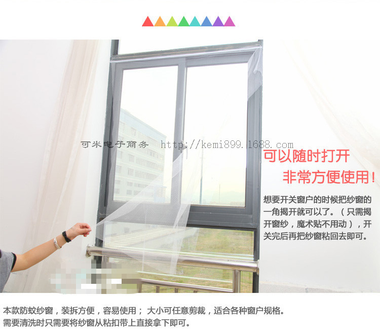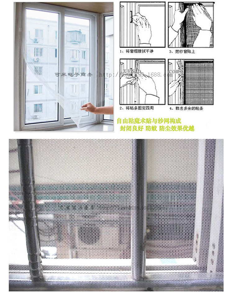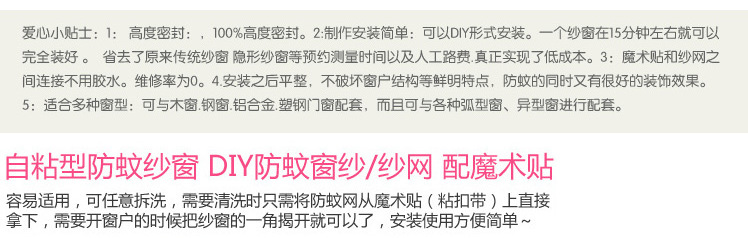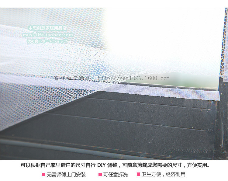 2:易于涂抹,易于分解和清洗。当您需洁净时,只需直接从魔术贴上取防蚊网(钩和环)即可;要再度安装,只需在魔术贴上按防蚊网。