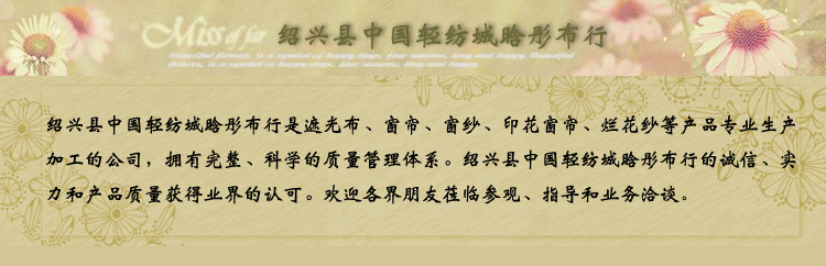 直营店地址:浙江省绍兴市绍兴县中国轻纺城北联窗帘城1区2楼2170