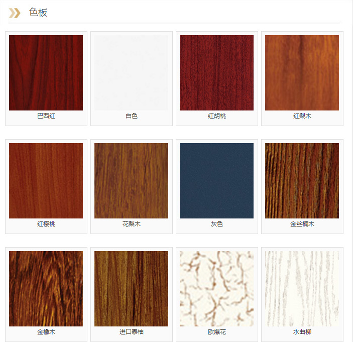 [色调]:水曲柳,红樱桃,花梨木,白色,红梨,缅甸红木,进口泰国柚子等。