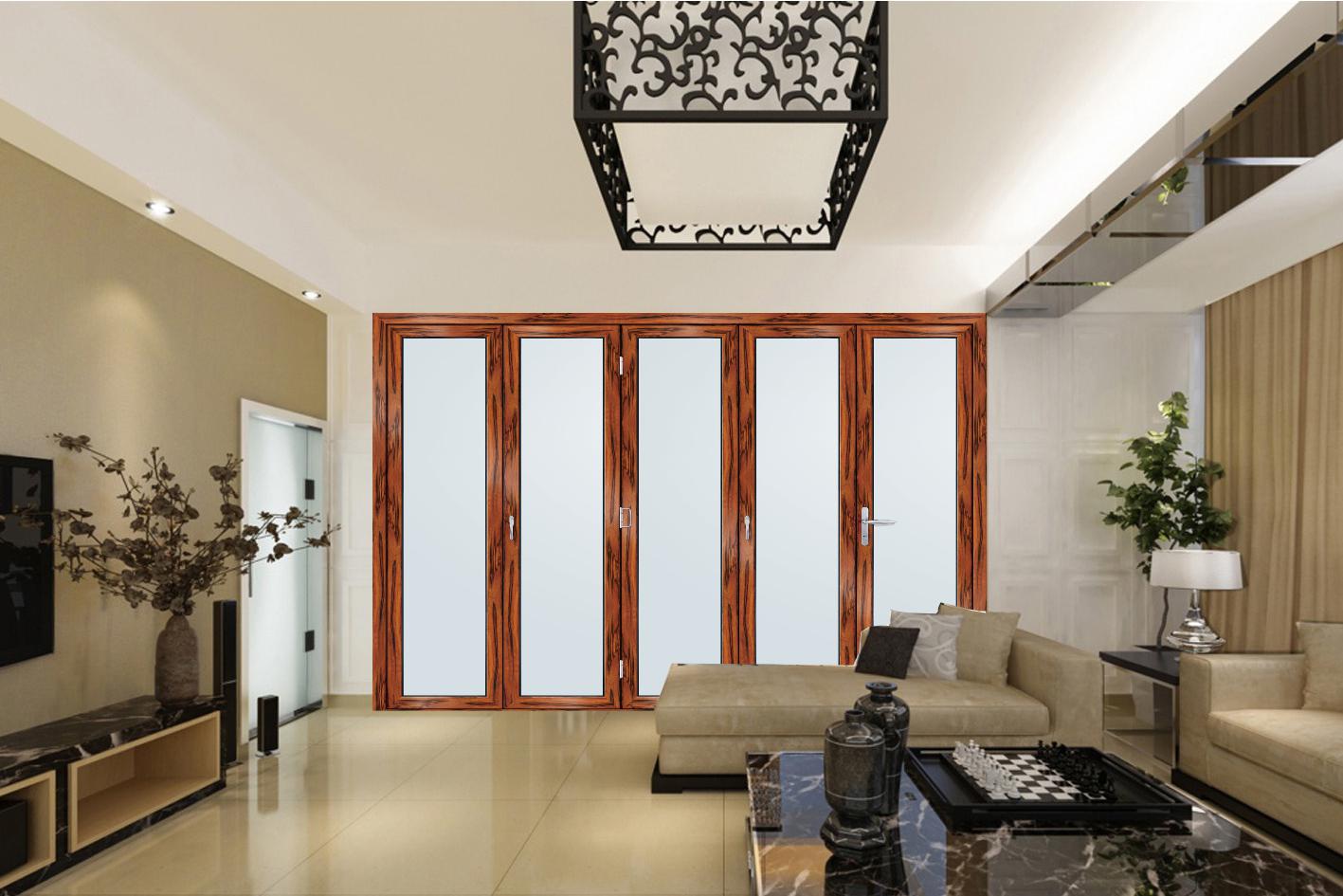 3.铝合金折叠门的设计还考虑了铝合金折叠门的重量。因为使用了铝合金材料,所以铝合金折叠门的质量相对较轻,并且具隔热,保暖和防潮的功用。等候此类特点。