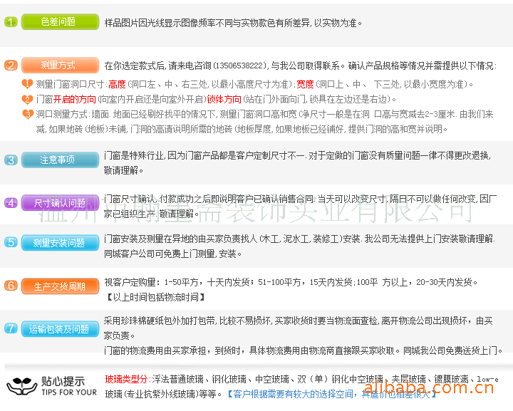 8.运输疑问:门窗的物流成本由买方肩负。货物抵达后,物流提供商将直接向买方收取支出。